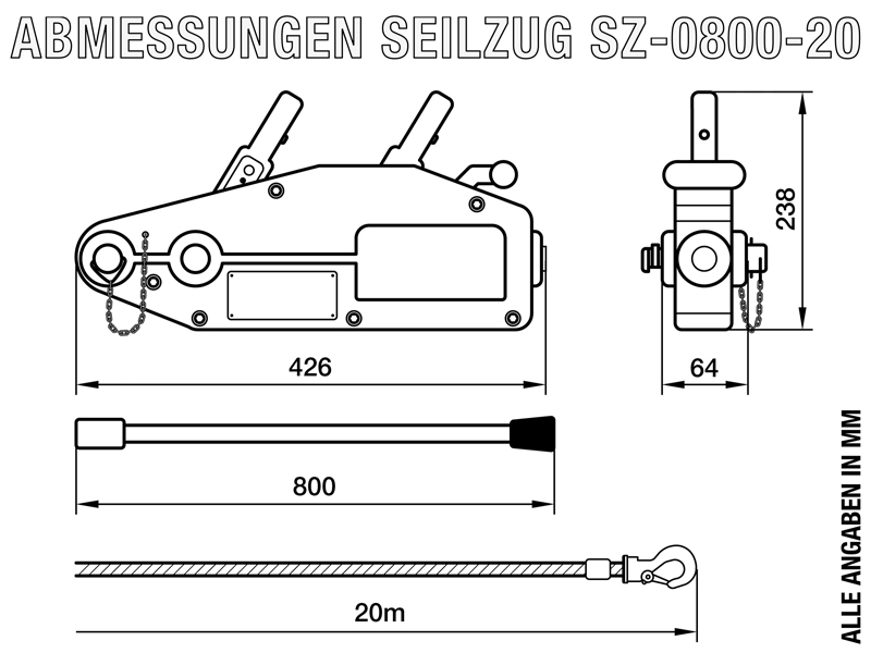 Žični poteg - poteznik 800kg / 20m