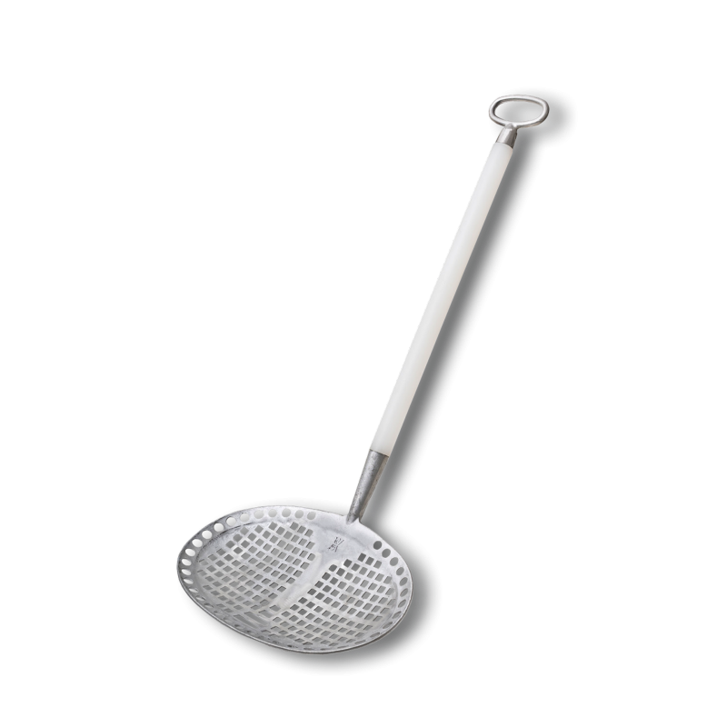Zajemalka-cedilka za zajemanje klobas iz kotla. Lahko se uporablja tudi za precejanje večjih ocvirkov.